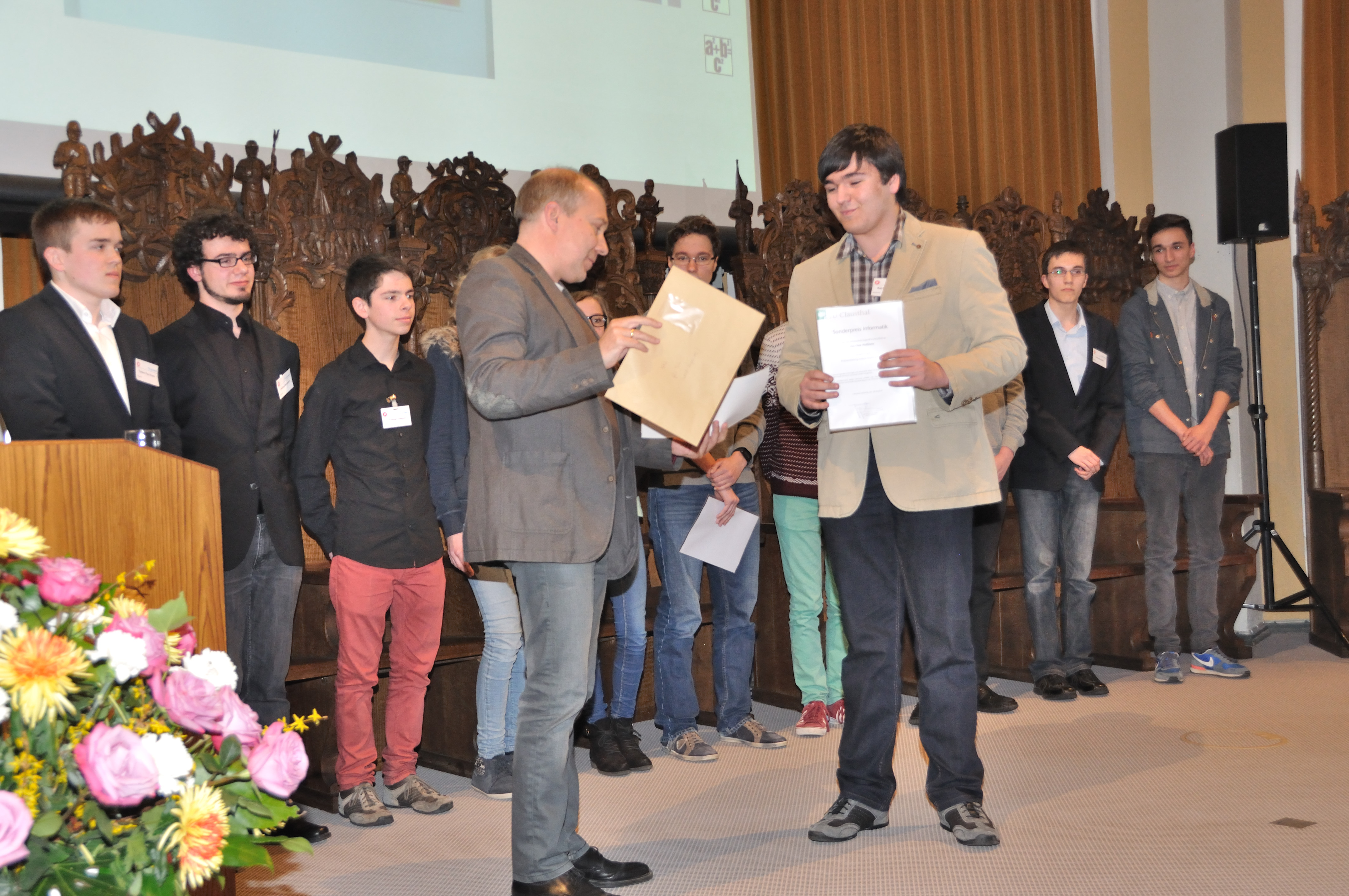 Im Rahmen des Wettbewerbs Jugend-Forscht 2014 hat Kai-Uwe Hollborn mit dem Projekt "Problemlösungen mittels neuronaler Netze" herausragende Leistungen und innovative Ideen im Bereich der angewandten Informatik erbracht und diese kreativ umgesetzt.